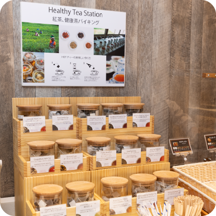 ホテルに着いたらほっと一息。紅茶バーやコーヒー、ジュースなどをご用意しております。