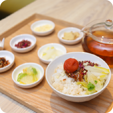 ちょっと小腹の空く夜のひと時に日和出汁茶漬けをどうぞ。料理長お手製のだし汁に日替わりトッピングでお好みのお茶漬けをお召し上がりいただけます。