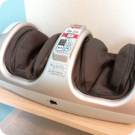 観光やビジネスで疲れた足を癒すフットマッサージャーを全室に完備しております。足の裏やふくらぎのマッサージができます。足の下にタオルを敷いてご利用くださいませ。