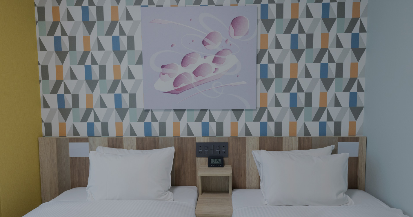 スマートTVでは有料コンテンツをお楽しみいただけます。※お客様ご自身のアカウントが必要です。壁には大阪をモチーフとしたアートを飾り、温かみのある客室です。