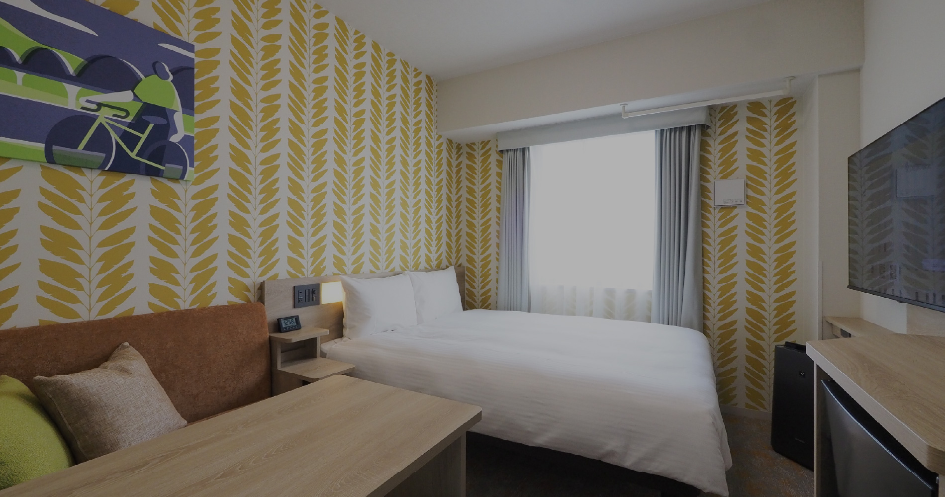 15平米のゆったりしたお部屋に、150㎝幅のワイドダブルベッドをご用意。